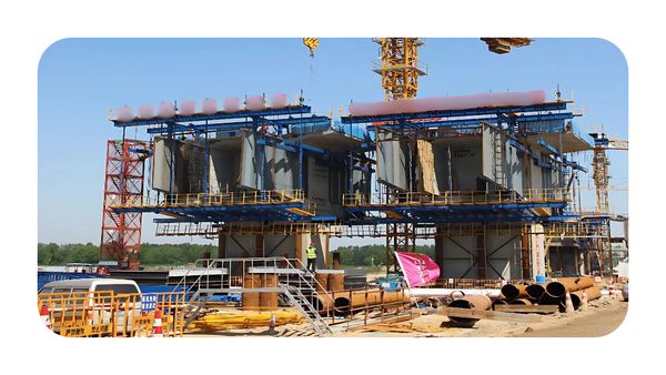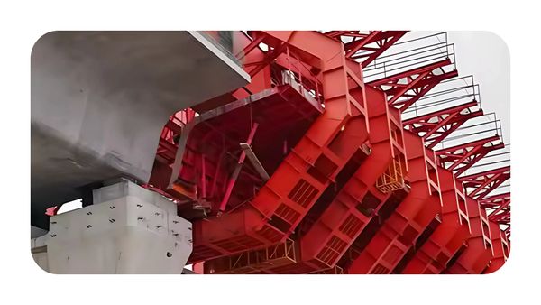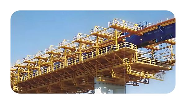 The single-column cable tower underslung form traveler is designed to align with the unique characteristics of the single-column cable tower shape, featuring a relatively compact structure. Its main components include the main beam, hanging points, bottom basket, and formwork. This traveler is ideal for bridge construction using single-column cable towers, particularly in situations requiring rapid construction and reduced material consumption.