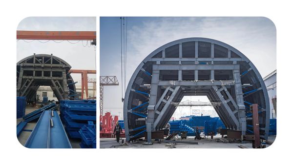 The needle beam steel formwork trolley is specifically designed for the complete lining of power station tunnels. The bottom, sides, and top of the circular section of the tunnel are assembled simultaneously using the trolley. Hydraulic cylinders are used for both the erection and demolition of the mold. Positioning and alignment are achi
