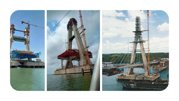 The A/H type cable tower underslung form traveler is named for its resemblance to the shape of the cable tower of a cable-stayed bridge. Its structure is similar to the letters "A" and "H" and consists of an upper beam, front and rear inclined bars, a bottom basket, and formwork. This type of traveler is suitable for the construction of A/H type cable towers, particularly in scenarios where the pouring of large-span and long-segment cable-stayed bridges is required.